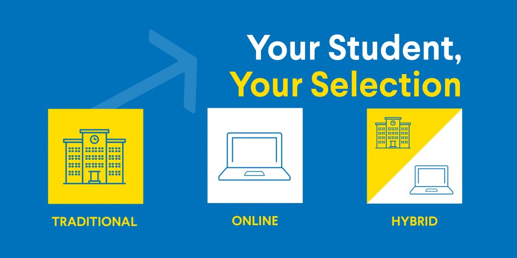 We are happy to announce that our students will have multiple learning options for the 20-21 school year: Traditional In-person learning at the school building with added safety protocols and procedures. Online At-home learning supported by teachers, technology, and curriculum specifically built for online learning. Hybrid A mix of Traditional and Online learning with in-person and at-home components. Over […]